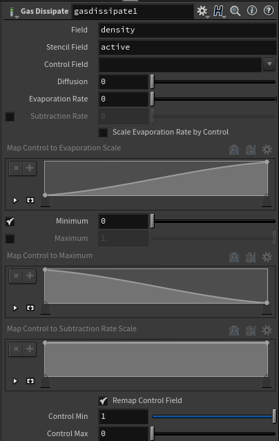 만약 Gas Dissipate 의 field가 temperature일 경우, Evaporation Rate의 값은 마치 Smoke Solver의 Cooling Rate처럼 작동한다.(값이 커질경우, 빠르게 온도가 식는다)