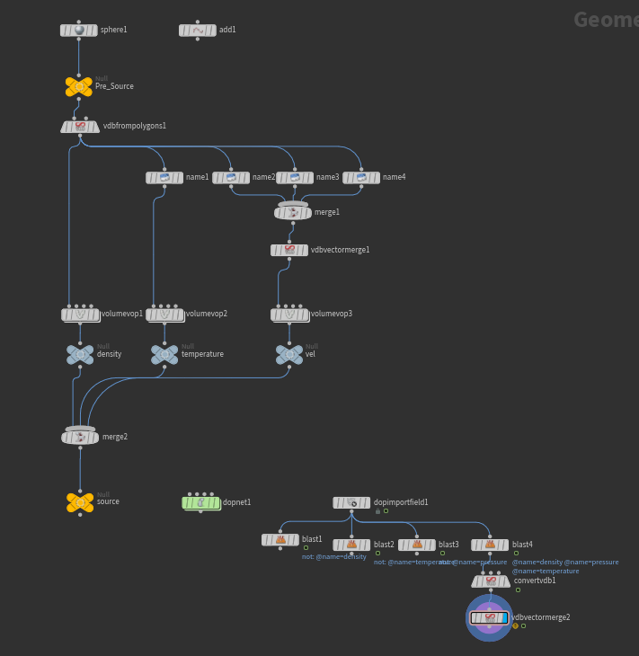 dop import field 아래에 노드를 연결한다면 density 뿐만 아니라 vel 과 temperature의 정보도 cache로 얻게 될 것이다.