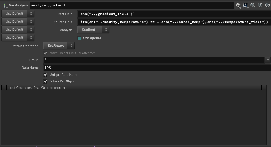 - Gradient에 대한 정보는 옆의 Gas Field VOP / Gas OpenCL에서 꾸며진다.