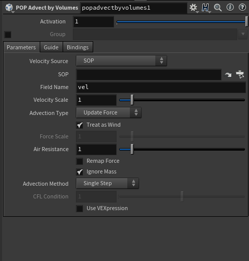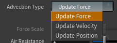 pop advect by volume의 advection type을 update force 에서 update velocity로 변경해준다.