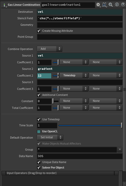 - 이렇게 꾸며진 gradient는 Gas Linear Combiation 노드에 의해 실제 velocity field에 더해진다.