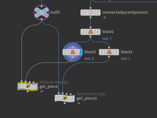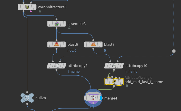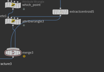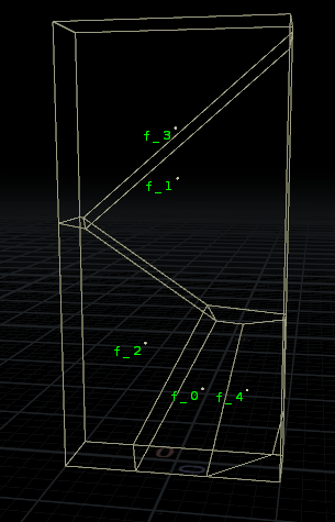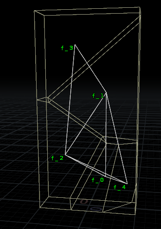 하지만, 절단되면서 생성된 면 중 f_4와 같은 이름을 저장하고 있는 면이 없기 때문에 attribute wrangle에 의해서 면들이 모두 날아가버리고, 이후의 무게중심점을 만들거나 하는 내용도 다 스킵되어버리기 때문에 constraint 세팅은 만들어지지 않는다.