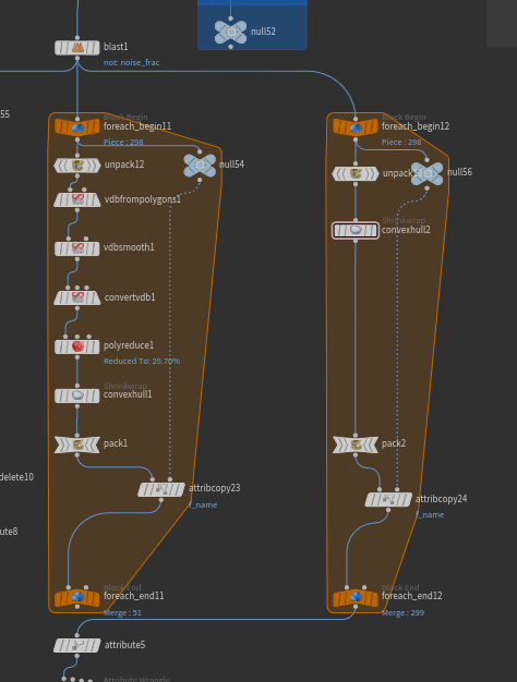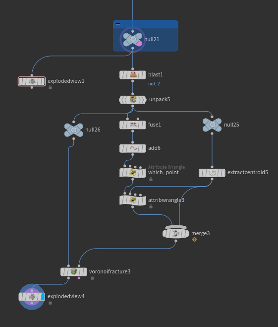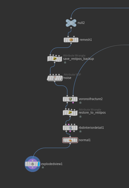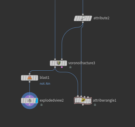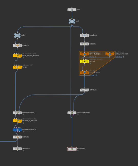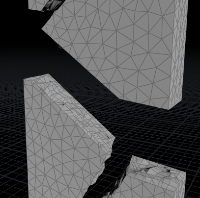 - voronoi fracture에 대해 기존에 만들어놨던 constraint system 노드로 constraint 세팅을 마무리지을 수 있었지만, 절단면에 노이즈가 들어가는 순간, 이것만으로 해결할 수가 없다. 또 다른 방식의 constraint 세팅이 필요해진다.