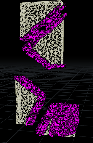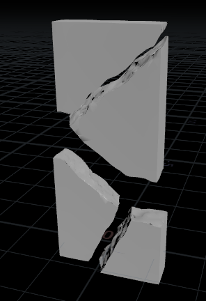 예전에는 맞닿는 면이 하나의 면으로 구성되어있어서 그 면의 중심을 사용하면 되었었지만, 절단면에 Noise가 추가된 케이스는 조각과 조각 사이의 맞닿는 면이 매우 많이 존재해서 구체적으로 하나의 맞닿는 면의 중심을 구하기가 어렵다.한다. 지금은 그럴 수가 없다.