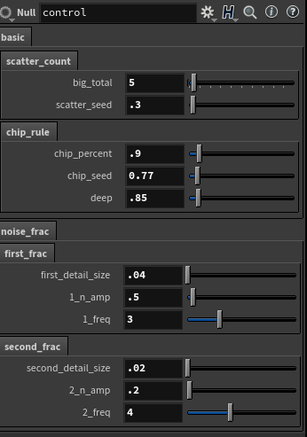 control 노드를 만들고 parameter를 생성해준 뒤, 값을 링크시켜줘서 조절이 쉽도록 구성했다.