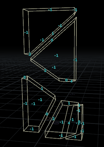 ex) 포인트 0과 1을 가지고 voronoi fracture를 생성하는 것으로 조각 A와 조각 B가 있을 때, 조각 A를 기준으로 조각 A / B 가 맞닿은 면은 조각 B에 의해서 생성된 면이다. 이 경우, 조각 A의 primitive에는 조각 B의 포인트 번호(1)가 저장이 된다.