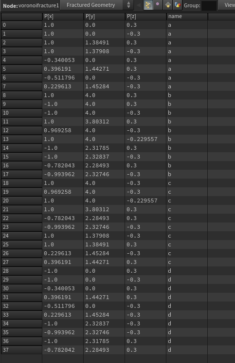 일단 voronoi fracture가 적용된 결과에 어떠한 정보가 있는지 확인이 필요하다.