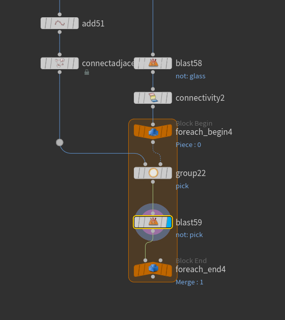 이런 때는 group과 for each connected piece를 활용해서 keep in bounding regions를 활용해서 불필요한 primitive를 날려주도록 한다.