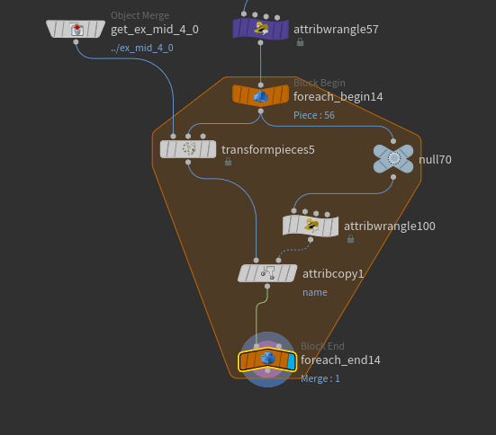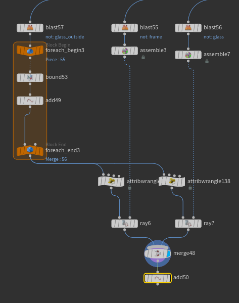 떼어낸 부분을 위에서 만들어줬던 창문으로 transform pieces 노드를 사용해서 치환해준다.